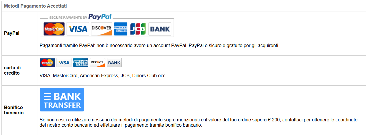 Tutti i nostri prodotti sono nuovi e disponibili in magazzino; non trattiamo articoli vecchi o obsoleti.